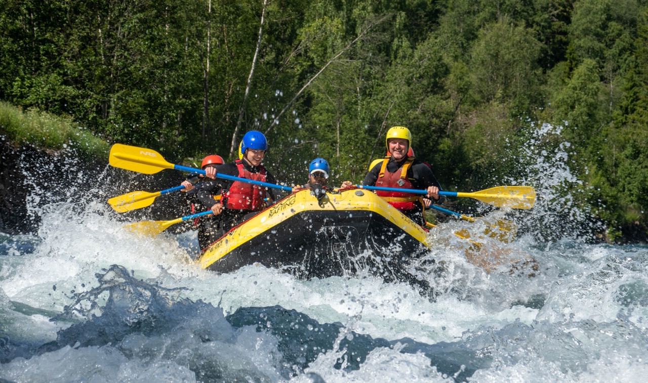 Timothy og Lars på rafting i Sjoa. Med hytte i Veggli Fjellgrend er rafting i Numedalslågen bare 1 t og 20 min unna.